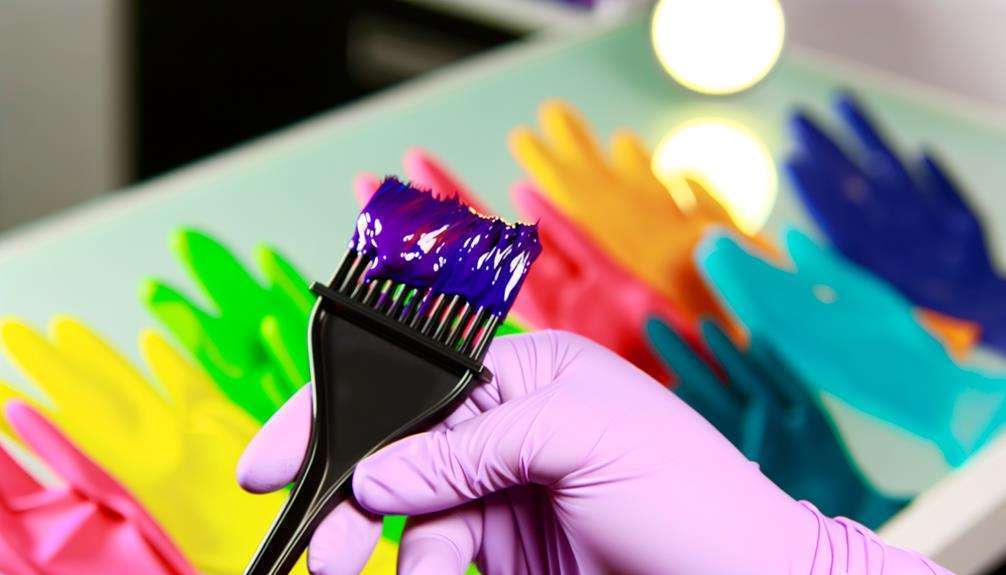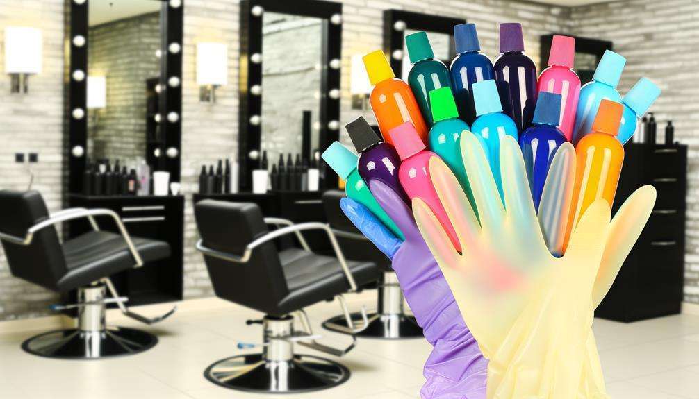 To protect your hands from hair dye, consider using latex gloves. They offer skin protection and hand care, helping avoid stains and potential dye allergies. Natural alternatives like barrier creams can also provide protection.